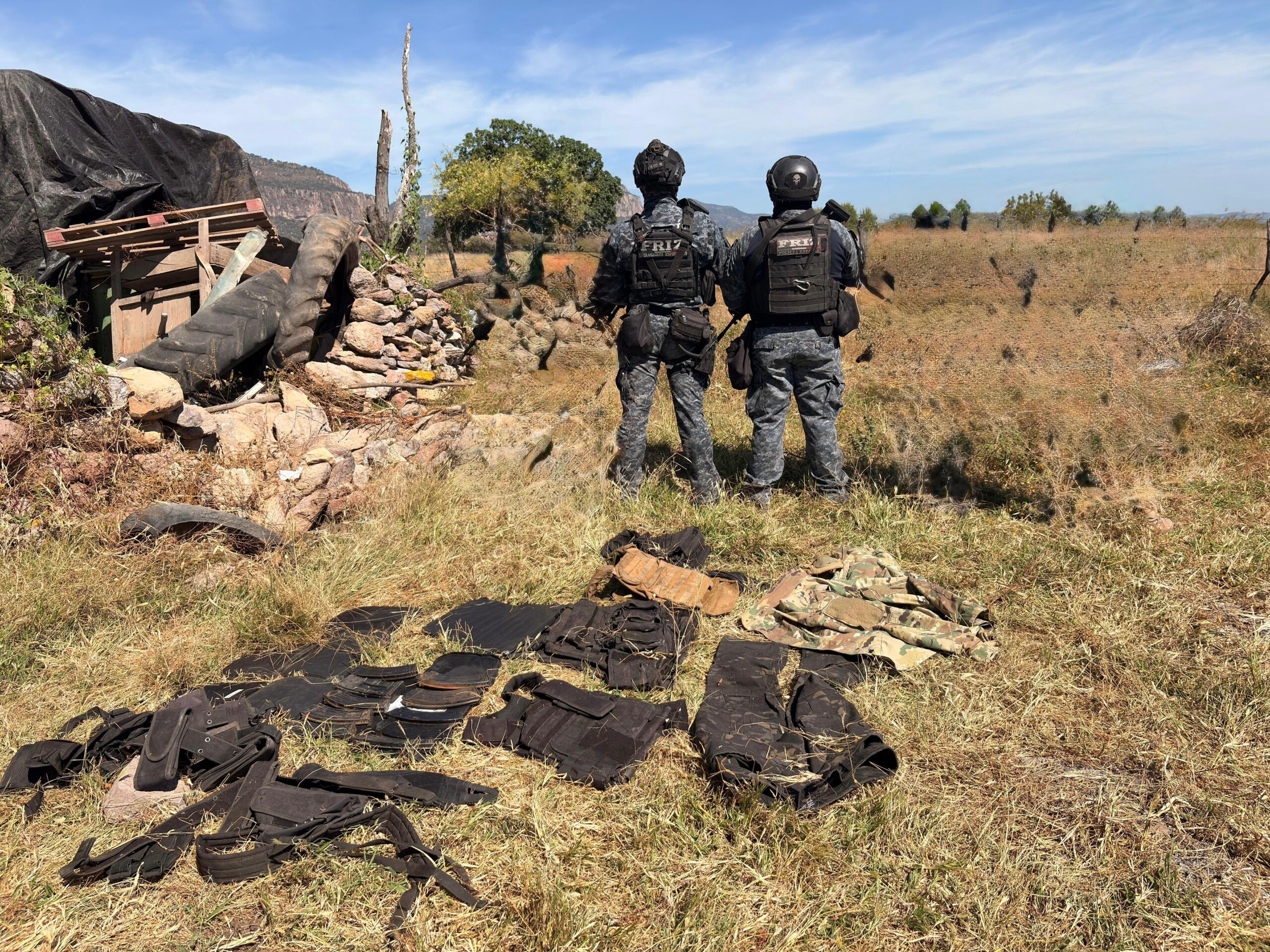 - Cinco placas balísticas, chalecos, fornituras, rodilleras y demás equipo táctico.