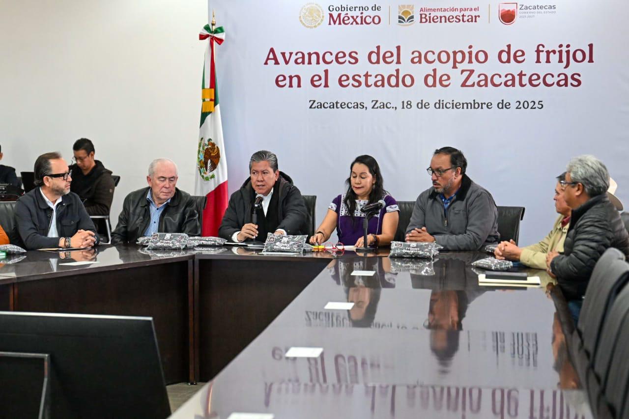 Zacatecas, Zac., 18 de diciembre de 2025.- Como resultado de la gestión del Gobernador David Monreal Ávila, el Gobierno de México, a través de la Secretaría de Agricultura y Desarrollo Rural (Sader) y Alimentación para el Bienestar, hicieron el compromiso de que este viernes estará abierta la totalidad de los centros de acopio de frijol en el estado, con lo que el 50 por ciento nacional se concentrará en Zacatecas.