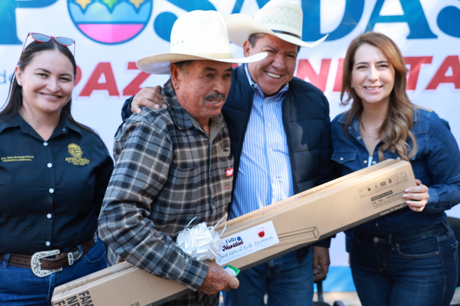 El Gobernador David Monreal deseó felices fiestas a las familias de Atolinga y reiteró su compromiso de seguir trabajando por la transformación de Zacatecas, porque “estamos cerrando un año lleno de bendiciones y resultados; el próximo año seguiremos llevando bienestar, justicia social y esperanza a cada rincón del estado”, expresó, previo a repartir regalos a las personas y juguetes a las niñas y los niños.