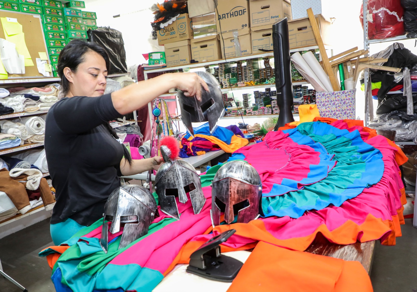 Cada atuendo está completamente armado e incluye sombreros, collares y accesorios únicos, así como figuras pintadas a mano por el propio personal, convirtiendo cada pieza en una obra de arte.