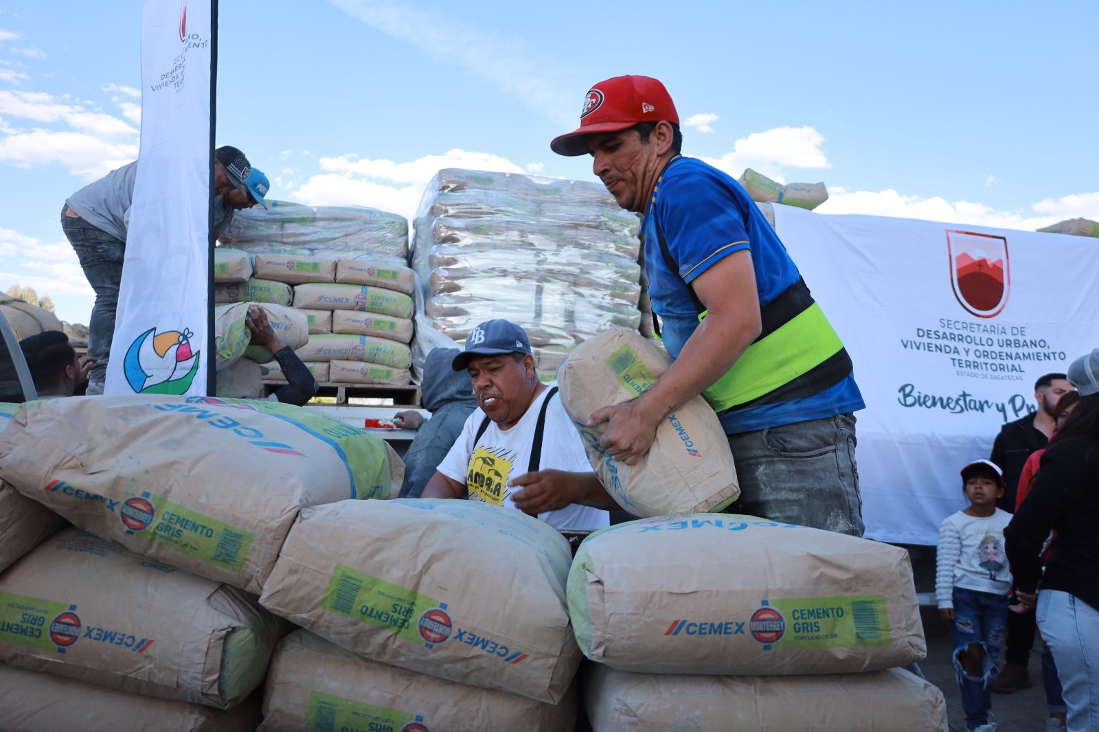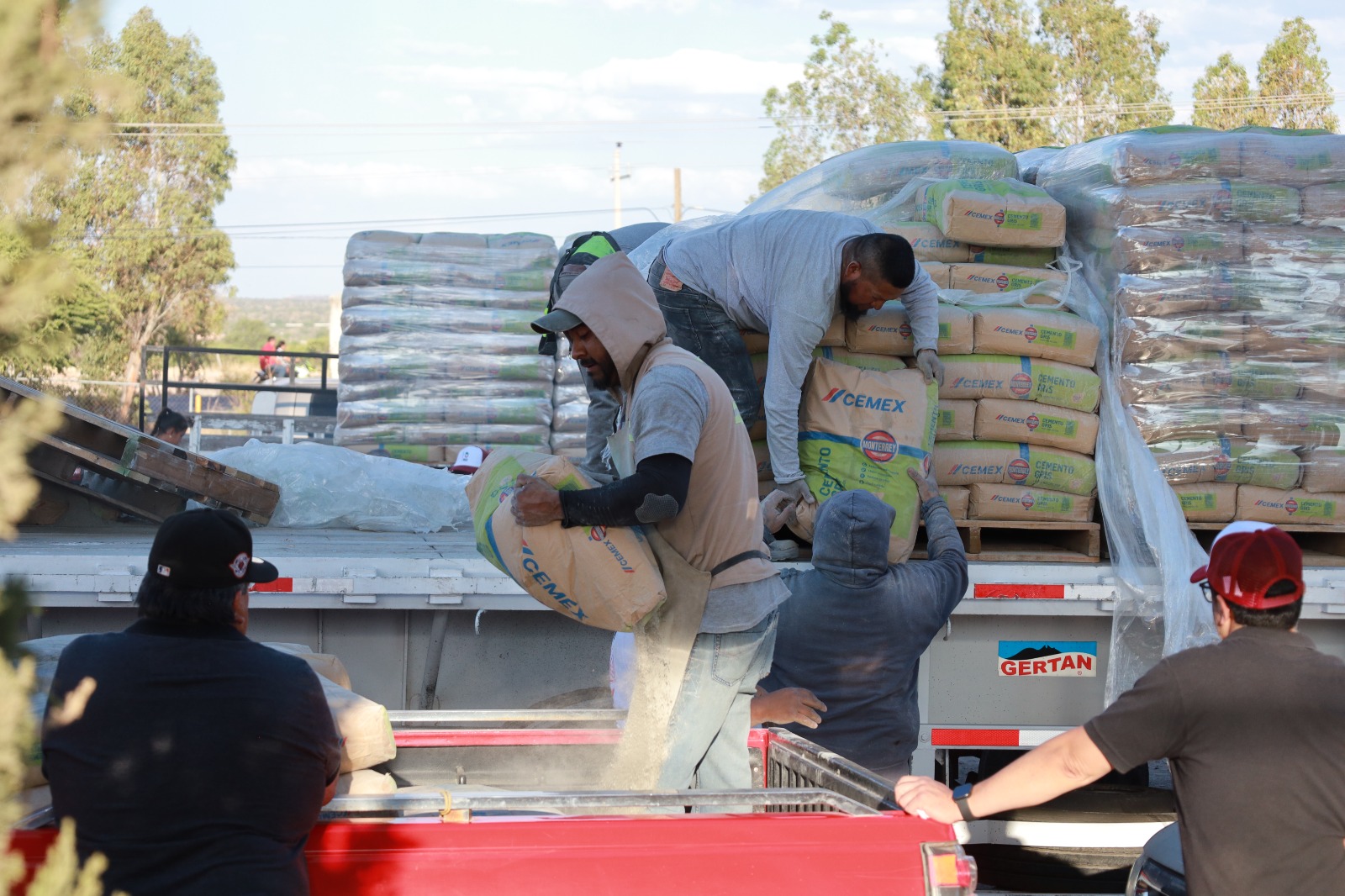 - En Miguel Auza, la administración estatal entregó 2 mil 710 bultos de cemento y 100 paquetes de techo de lámina