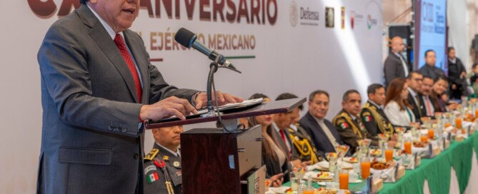 Ejército Mexicano, clave en la pacificación y seguridad de Zacatecas: Gobernador David Monreal En el marco de la conmemoración del 113 Aniversario del Ejército Mexicano, el mandatario resaltó la colaboración de la institución con la Mesa Estatal de Construcción de Paz y Seguridad Hizo entrega de reconocimientos a destacados integrantes del Ejército por su ardua