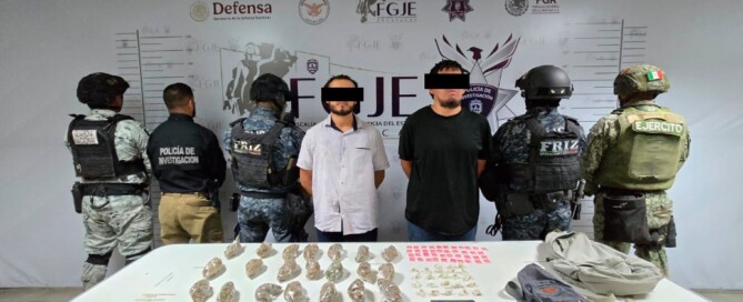 Detienen Fuerzas de Seguridad a dos generadores de violencia: estaban en posesión de un arma y probable drogaEstas acciones derivan del seguimiento a datos técnicos y análisis de información, lo que permitió que el personal de las Fuerzas de Seguridad ubicara a los dos masculinos Jerez de García Salinas, Zac., 26 de marzo de 2026.- En