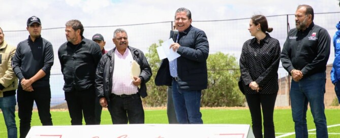 Inaugura Gobernador David Monreal junto con directivos de Pachuca, Cruz Azul, Chivas y Mineros cancha de pasto sintético en Pánuco La obra tuvo una inversión de 4.3 millones de pesos y forma parte del programa Regeneración Urbana para el Bienestar Se colocaron porterías y se instaló pasto sintético en una superficie de 5 mil metros