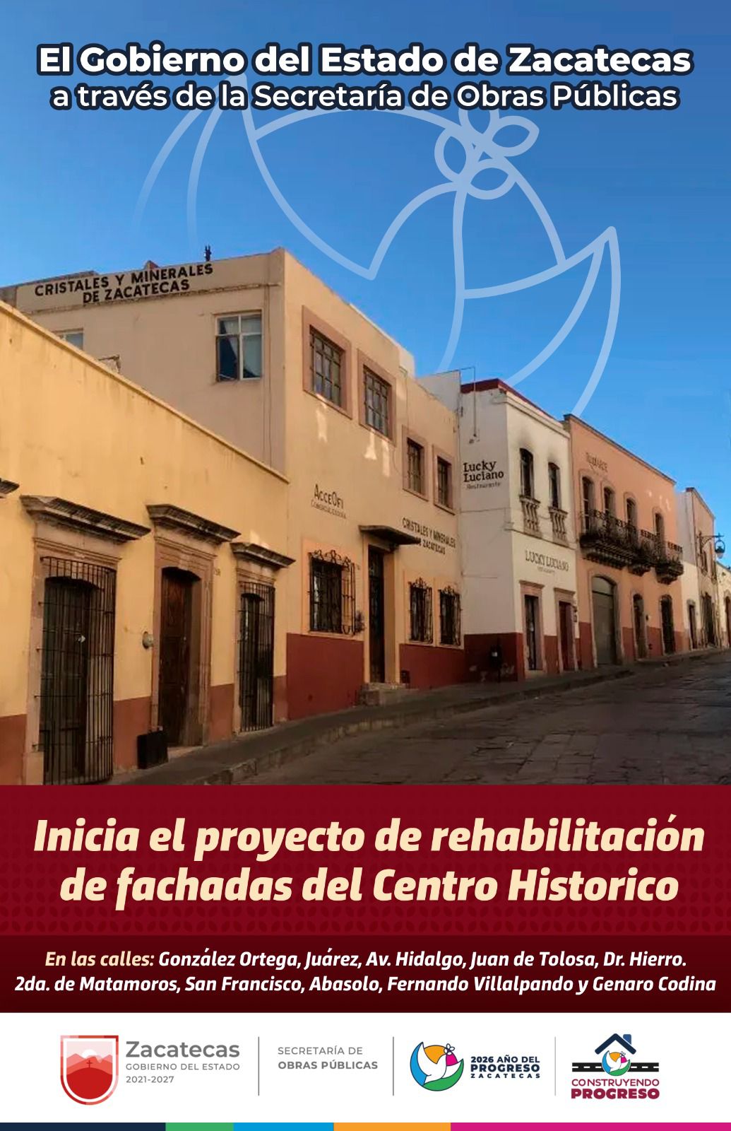Zacatecas, Zac., 4 de febrero de 2026.- La administración estatal, encabezada por el Gobernador David Monreal Ávila, a través de la Secretaría de Obras Públicas, dio inicio al proyecto de rehabilitación de fachadas principales del Centro Histórico, con el firme propósito de preservar la belleza arquitectónica barroca y neoclásica que distingue a la ciudad y que le ha otorgado el reconocimiento como Patrimonio Cultural de la Humanidad.