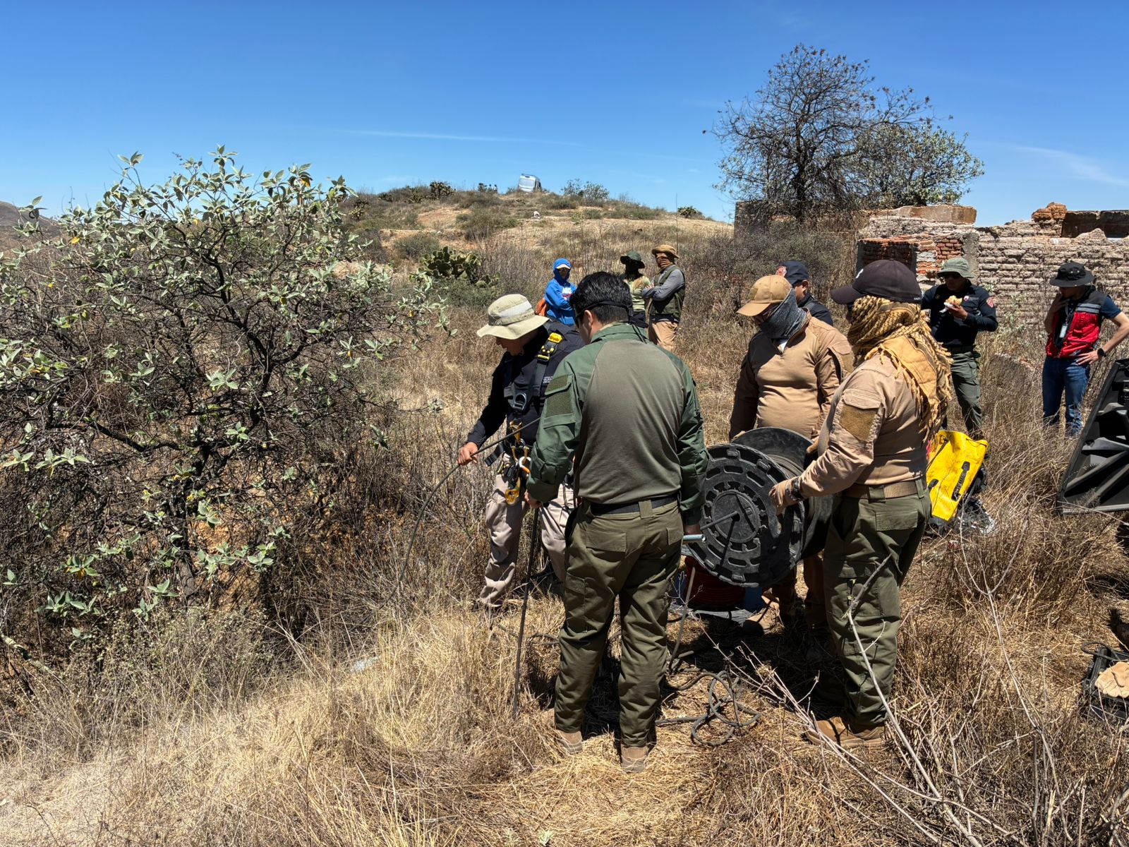 Durante las acciones emprendidas este jueves, se utilizaron drones, georadares, herramientas de mano y cámaras de pozo profundo; se contó con el apoyo de personal de la Coordinación Estatal de Protección Civil, Comisión Ejecutiva de Atención Integral a Víctimas, de la Secretaría de Seguridad Pública y la Guardia Nacional, así como la representación de los colectivos de familias de personas desaparecidas.