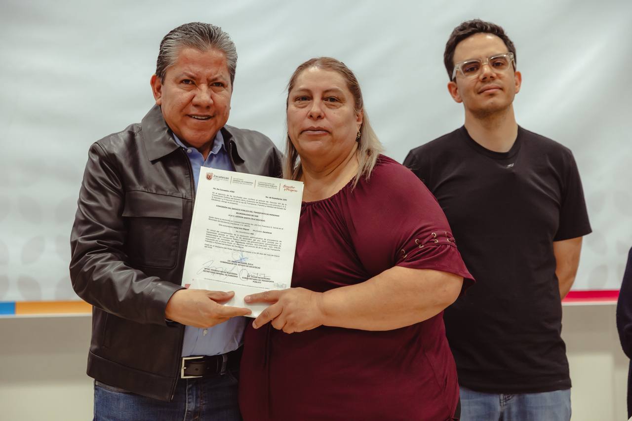 Zacatecas, Zac., 26 de marzo de 2026.- A sus 90 años de edad, y 13 de luchar por poner su nombre a la concesión que dejó su esposo al momento de fallecer, la señora Rosa María Palacios Cruz recibió el documento que, al fin, le da esa certeza jurídica, de manos del Gobernador David Monreal Ávila.