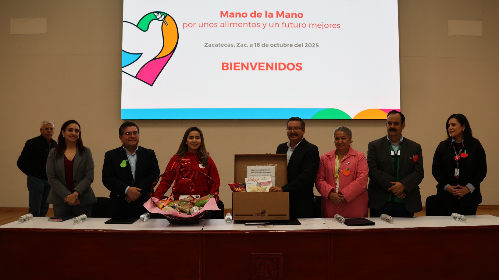 Durante el evento se entregaron despensas con alimentos no perecederos, acopiadas en el edificio de la SSZ, en Ciudad Administrativa, las cuales fueron donadas al Banco de Alimentos de Zacatecas, representado por Sarahid Falcón.