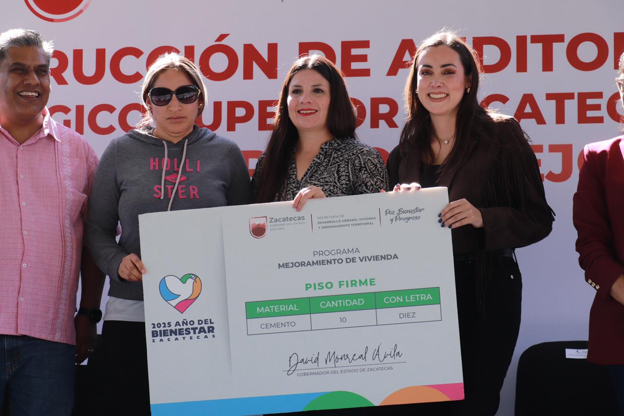 Este miércoles, también se entregaron apoyos de Vivienda para el Bienestar a 100 familias de Sombrerete, que se promueven a través de la Secretaría de Desarrollo Urbano, Vivienda y Ordenamiento Territorial (Seduvot).