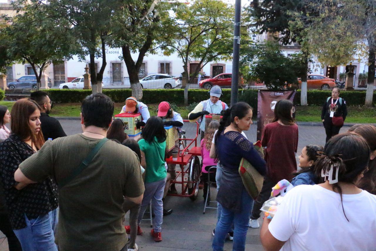 En su jornada de clausura, las actividades incluyeron la intervención urbana “El mundo en una caja”, de La Dudosa Teatro, compañía originaria de Aguascalientes, que presentó tres entrañables microhistorias, en espacios públicos como el Mercado de Abastos y la Alameda Trinidad García de la Cadena, con las que logró cautivar a todo tipo de público, con su propuesta de animación de objetos y teatro en miniatura.