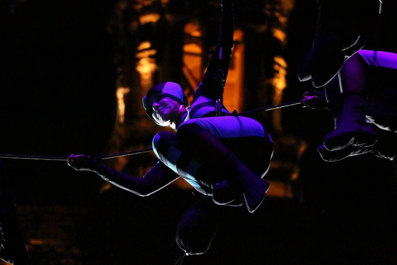 Con una grúa de más de 40 metros de altura, tres músicos y ocho acróbatas en escena, la agrupación transformó el cielo zacatecano en un espacio de magia y celebración colectiva.