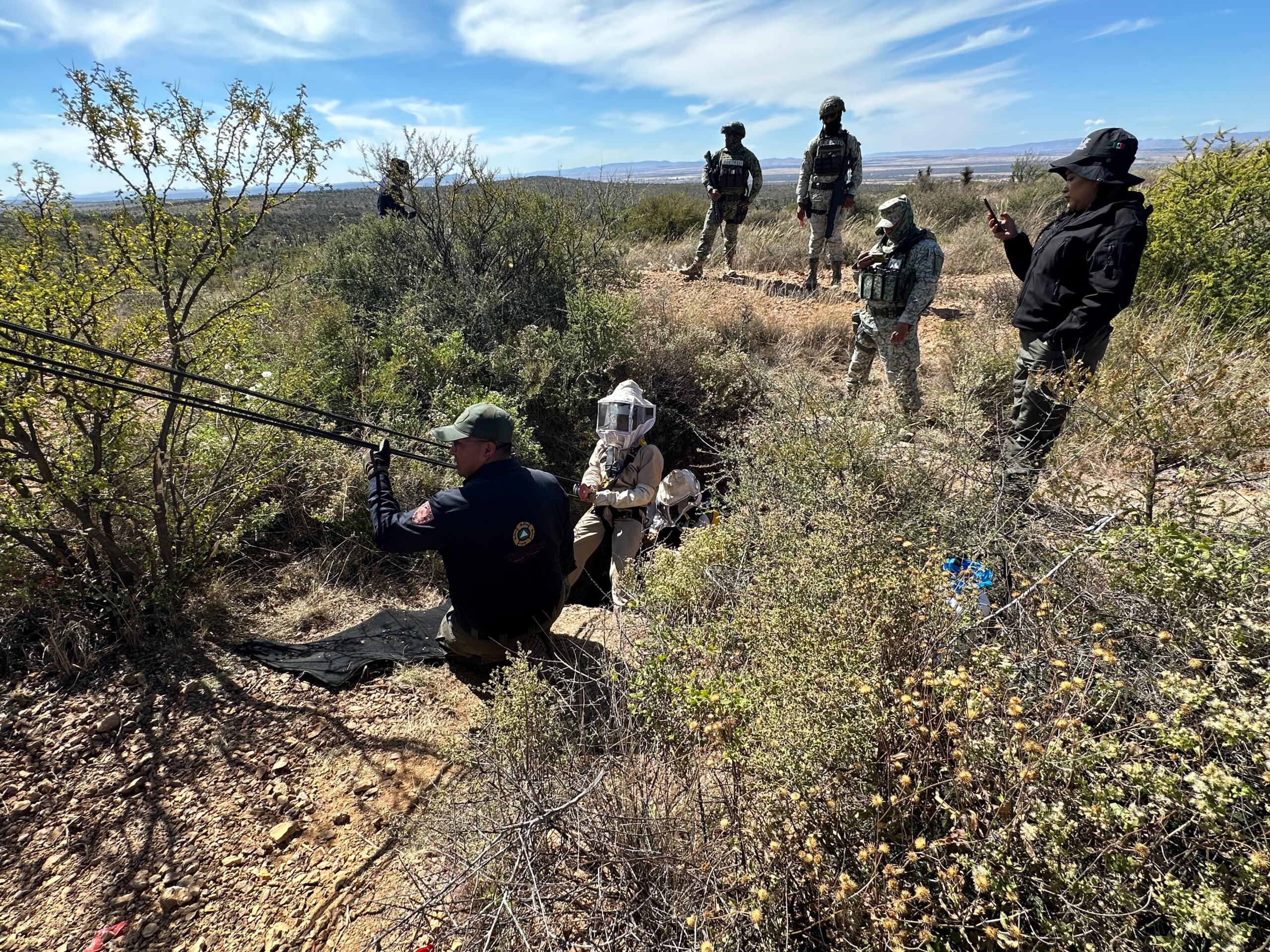 Acompañados por representantes de colectivos de familias de personas desparecidas, las autoridades recorrieron varios predios apoyados con drones, georadares y herramientas de mano.