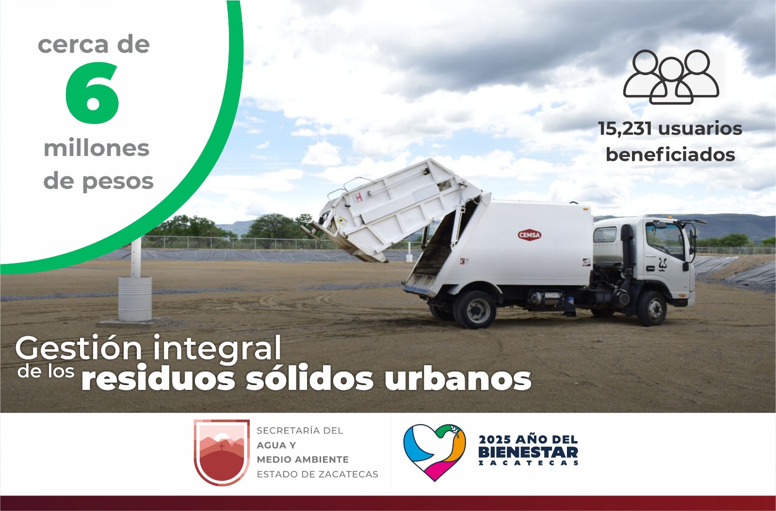 Con el objetivo de fortalecer la gestión integral de los residuos sólidos urbanos y dar cumplimiento a la norma oficial mexicana NOM-083-SEMARNAT-2003, que establece las especificaciones de protección ambiental para la selección del sitio, diseño, construcción, operación, monitoreo, clausura y obras complementarias de un sitio de disposición final de residuos sólidos urbanos y de manejo especial, se destinaron cerca de 6 millones de pesos para los rellenos sanitarios de la localidad de San José de Tayahua, Villanueva, el complemento y la construcción en Luis Moya.