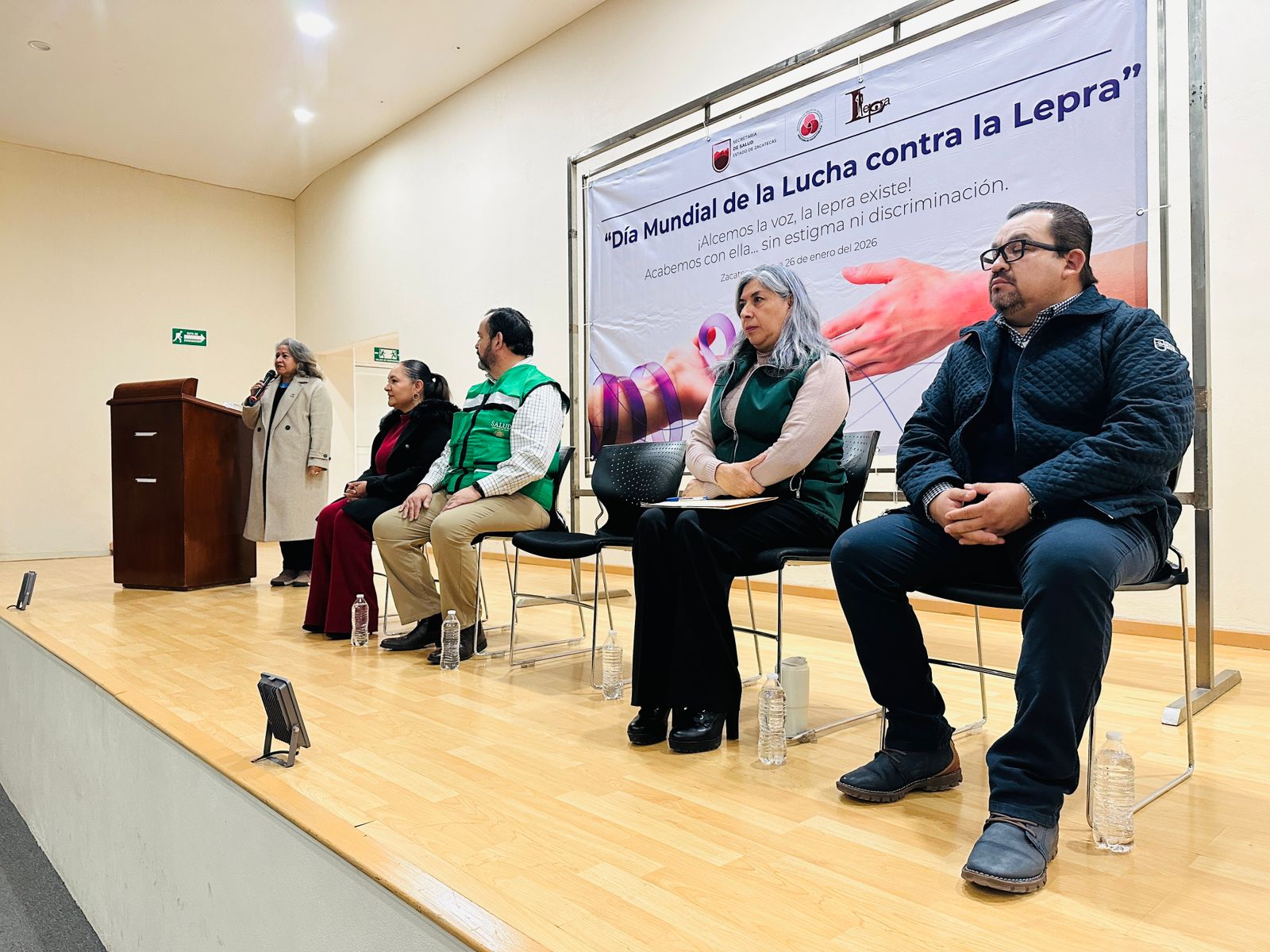 Ana María Monreal Ávila, directora de Salud Pública de la SSZ, encabezó el acto inaugural, en donde recordó a las y los asistentes que la Lepra es una enfermedad milenaria que afecta a la piel y nervios periféricos, la cual es curable y en México se cuenta con un tratamiento eficaz y gratuito.