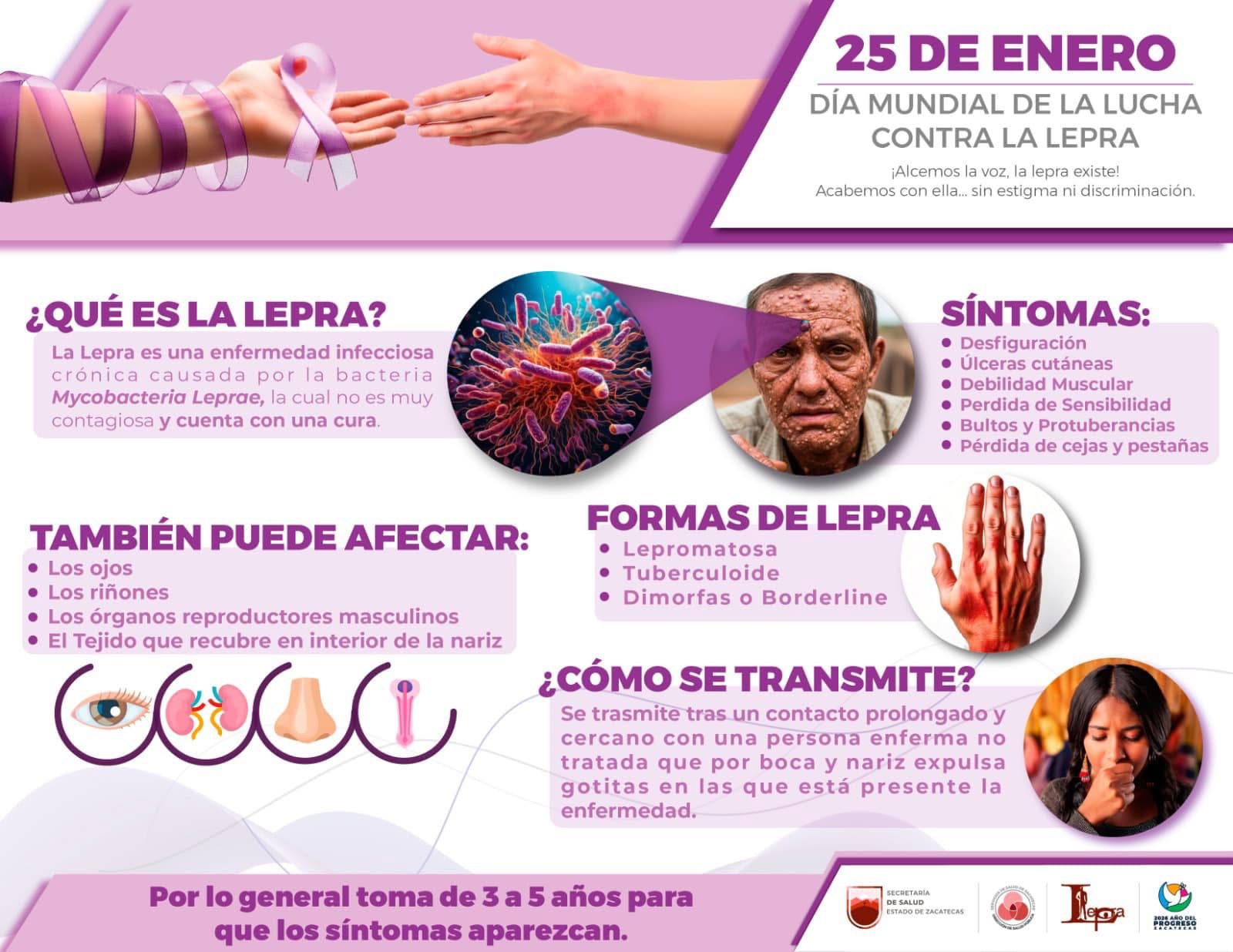 Zacatecas, Zac., 26 de enero de 2026.- En el marco del Día Mundial de Lucha contra la Lepra, el Gobierno de Zacatecas, a través de la Secretaría de Salud (SSZ), realizó un curso híbrido para actualizar los conocimientos acerca del tratamiento y detección de esta enfermedad.