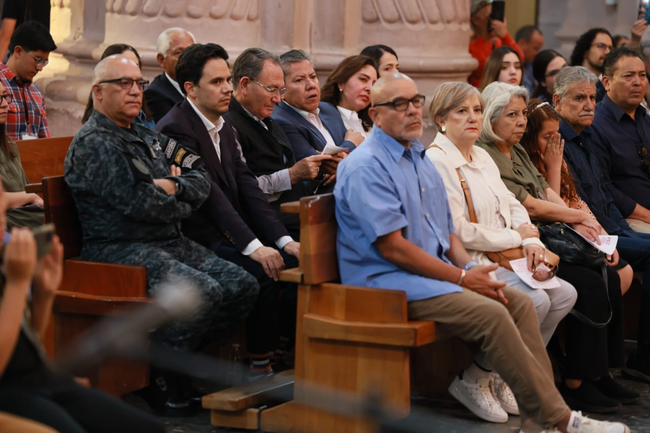 Acompañados por el Obispo de Zacatecas, Sigifredo Noriega Barceló, el Gobernador David Monreal Ávila y su esposa, Sara Hernández de Monreal, se dieron cita en la Catedral para presenciar el concierto, que estuvo bajo la dirección de Sergio Bañuelos Robles.