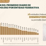 A nivel nacional, según la estadística de las 32 Procuradurías y Fiscalías estatales, el promedio diario de homicidios dolosos se redujo de 86.9 casos en septiembre de 2024 a 54.7 en noviembre de 2025, lo que representa una disminución del 37 por ciento, equivalente a 32 homicidios menos por día.