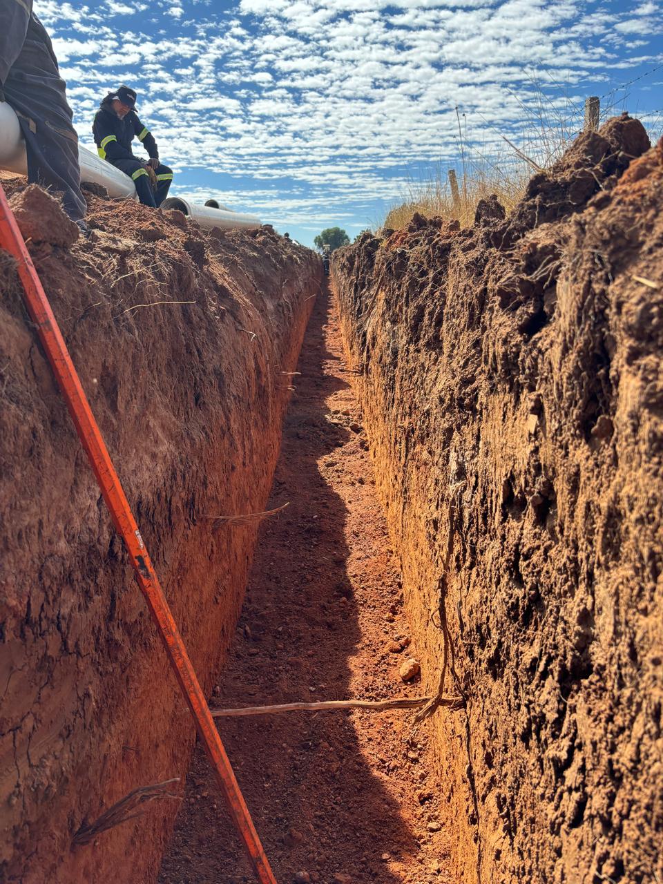 La tubería, instalada por personal de la Dirección de Distribución, permitirá incorporar al sistema de abastecimiento Centenario el agua de un nuevo pozo denominado Los Pancheros 2, que tendrá una aportación de 25 litros de agua por segundo.