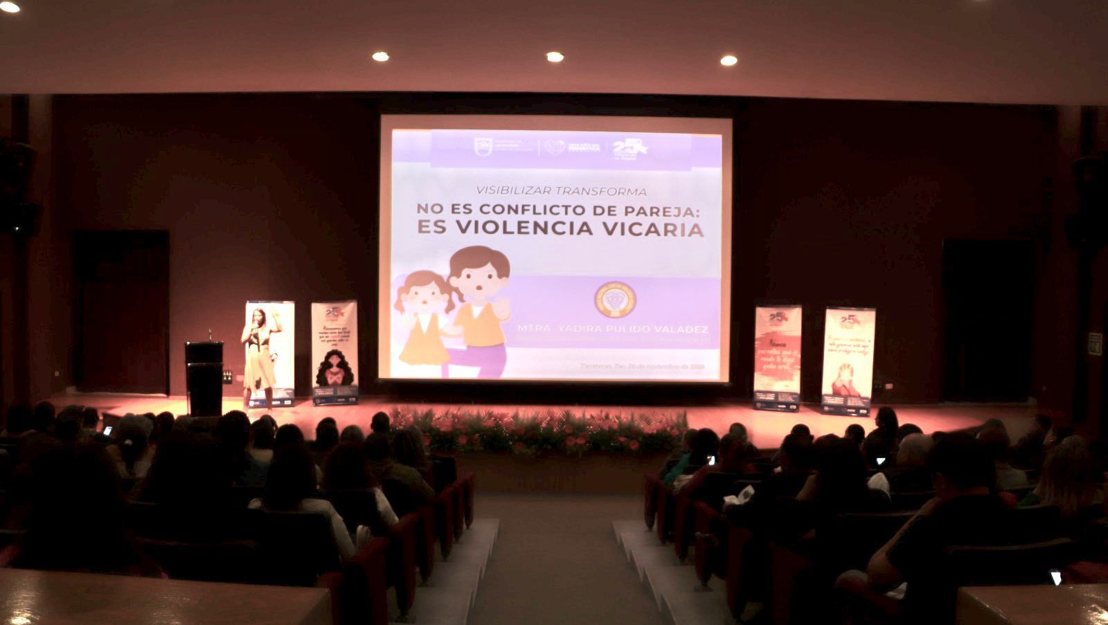 Como parte de la agenda del día, se llevó a cabo la conferencia “Violencia Vicaria”, impartida por Yadira Pulido, impulsora de la Ley en Zacatecas, quien, en su exposición, abordó las manifestaciones y consecuencias de este tipo de violencia, así como las rutas institucionales para su identificación y denuncia.