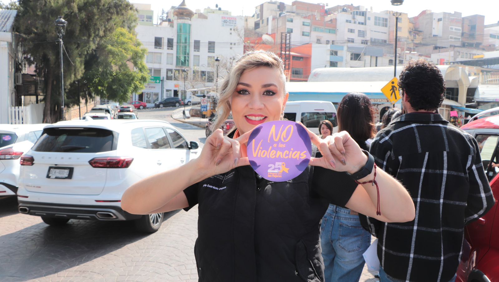 La Secretaria y el equipo operativo de la dependencia entregaron calcomanías informativas a cientos de automovilistas, a través de las cuales se promueven los números de emergencia, servicios gratuitos y la disponibilidad de acompañamiento especializado.