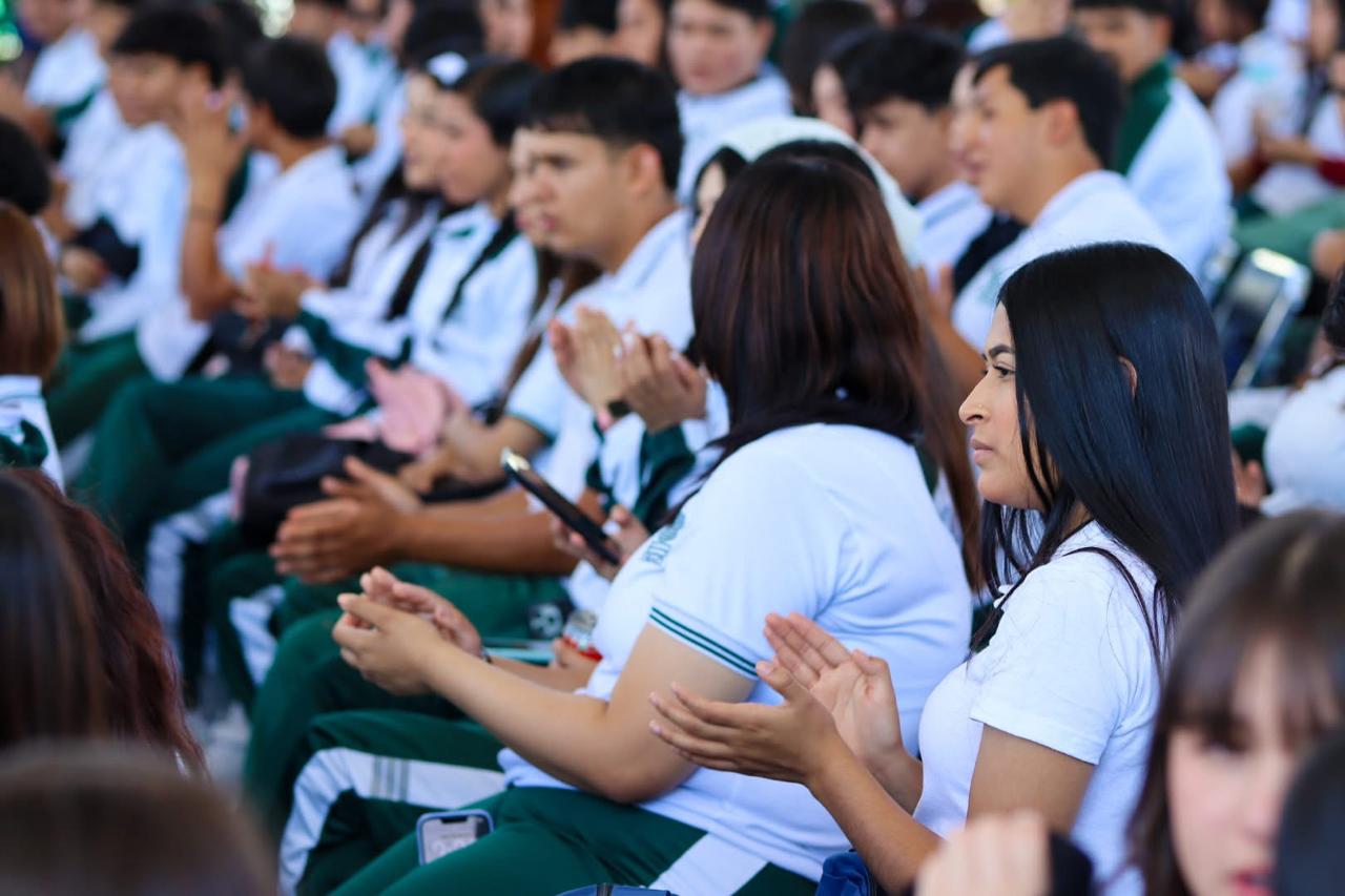 Ante el alumnado del Cobaez, plantel Víctor Rosales, pidió escoger bien a las y los amigos, conocerlos, saber a qué se dedican, pues muchas veces son quienes te llevan a conductas que te ponen en riesgo.