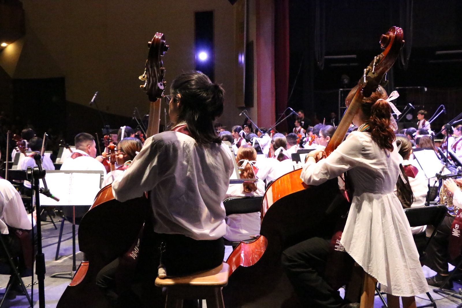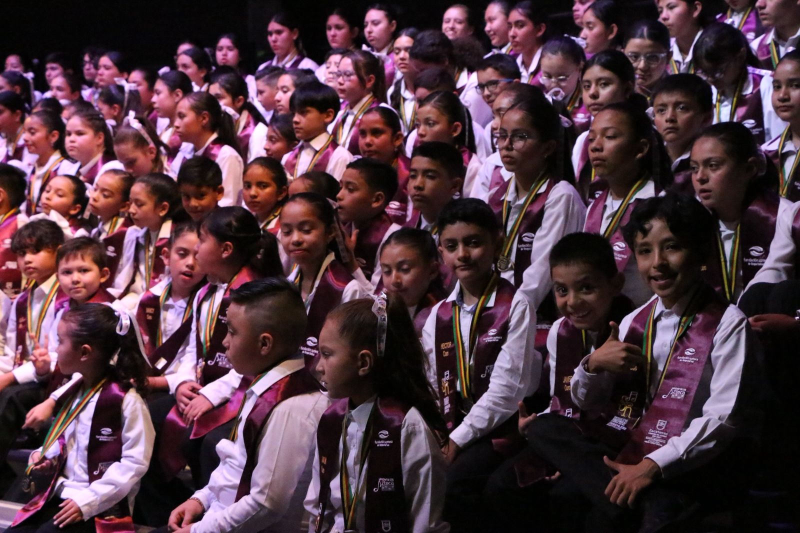 El escenario se llenó de energía y emoción con la participación de más de 300 niñas, niños y jóvenes, provenientes de los municipios de Zacatecas, Guadalupe, Morelos, Fresnillo y Jerez, 100 pertenecientes a la Orquesta Sinfónica y 201 al Coro, conformando un ensamble que evidencia el poder transformador de la música en la vida de la juventud zacatecana.