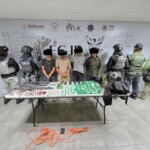 Los cuatro masculinos fueron detenidos y junto con el armamento, droga, explosivos y demás indicios, puestos a disposición de la autoridad competente para la integración de la investigación correspondiente.