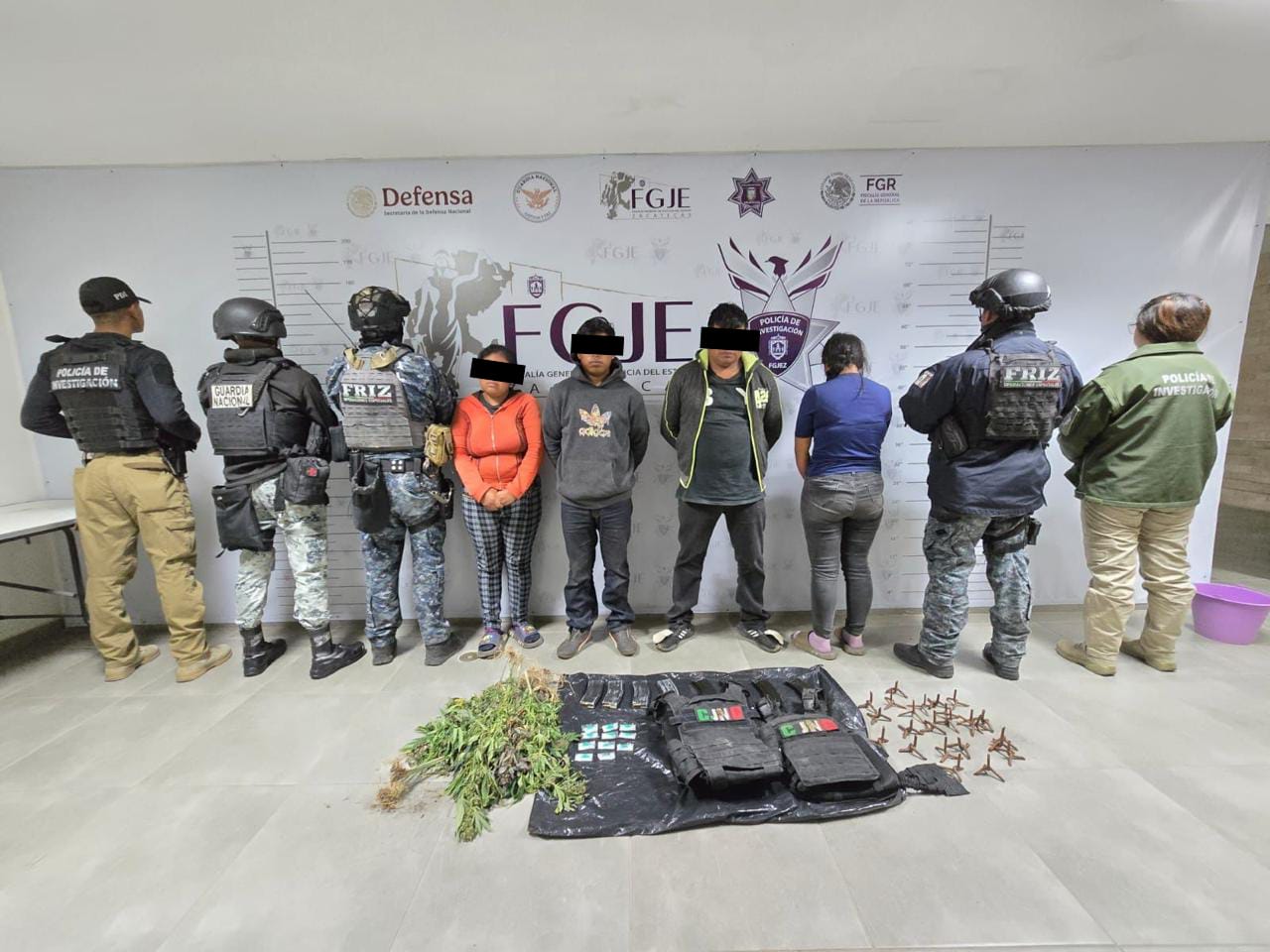 Las personas detenidas fueron identificadas como Amadeo N., de 28 años de edad; Alejandro N., de 20 años; Hermelinda N., de 25 años y una menor de 16 años, todos originarios de Jalisco.