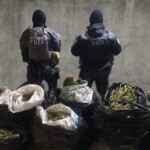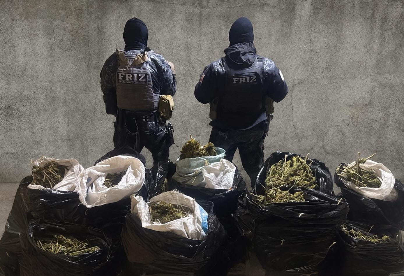 - Durante inspección, oficiales localizan hierba seca y verde con características similares a la marihuana, así como cargadores de arma de fuego y equipo táctico
