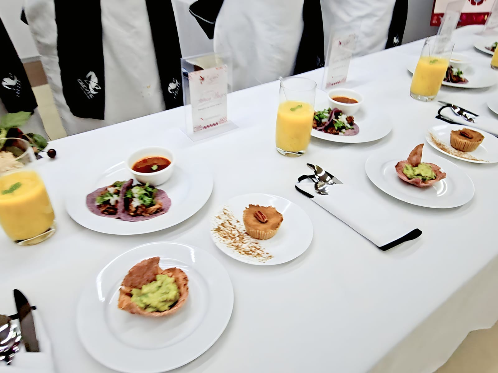 El representativo zacatecano participó con una entrada titulada “Azteca negro”, consistente en un guacamole especial servido en una cama de totopos negros. En seguida, el plato fuerte llamado “El tesoro huitzileño”, consistió en tacos de birra de res, acompañados de un consomé hecho con una receta familiar, servidos en una tortilla azul preparada a mano.