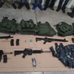 • Se aseguraron armas de fuego, cargadores, cartuchos, equipo táctico, probable droga y dos vehículos