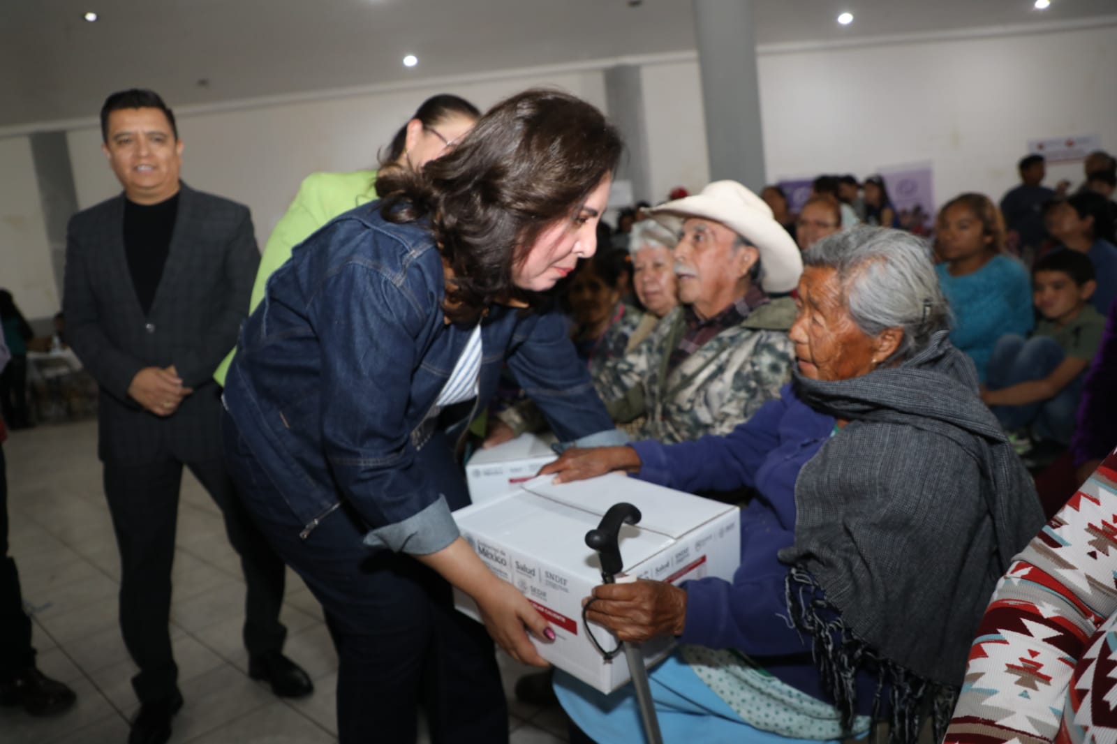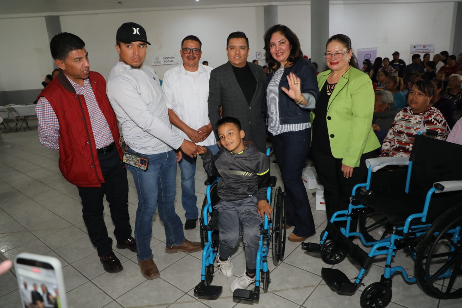 Con calidez y cercanía, la señora Sara Hernández supervisó la entrega de aparatos funcionales, pañales para bebé, bolos, lentes para vista cansada, paquetes alimentarios, calzado, bicicletas y otros apoyos diseñados para mejorar la calidad de vida de la población.