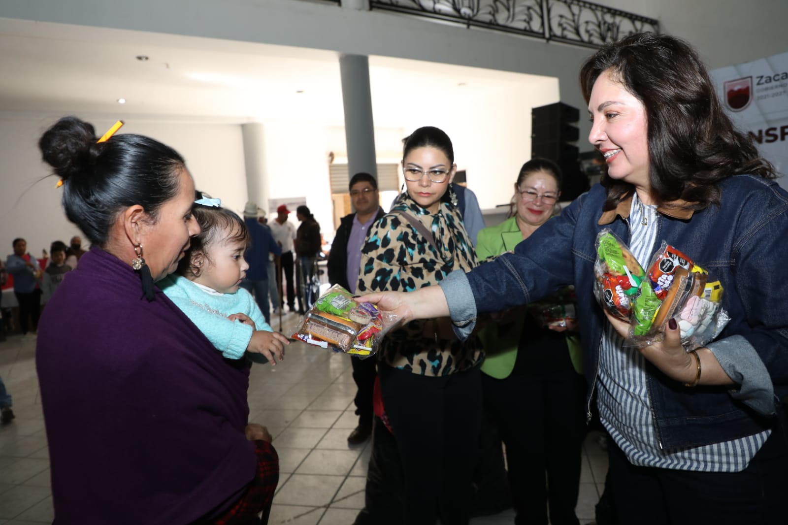 El evento fue encabezado por la Presidenta Honorífica del Sistema Estatal para el Desarrollo Integral de la Familia (SEDIF), Sara Hernández de Monreal, quien, acompañada del Presidente Municipal, Ignacio Gómez Almaraz, convivió con madres, padres, niñas, niños y personas adultas mayores que se dieron cita para acceder a los diversos beneficios.