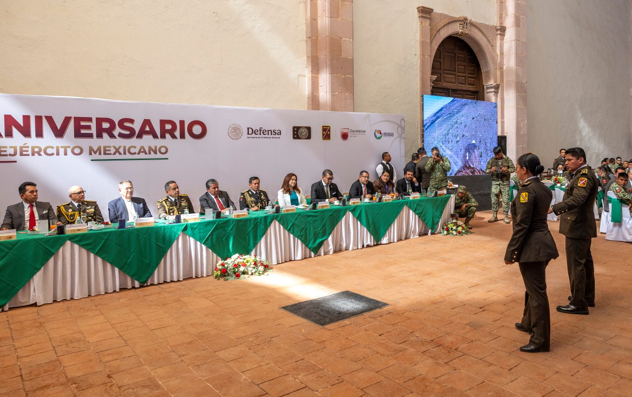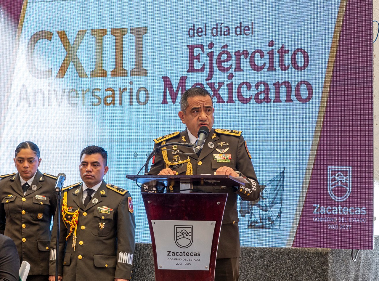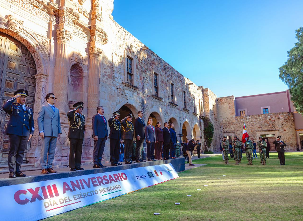 Refirió que Zacatecas, tierra de profundas raíces patrióticas y escenario de acontecimientos trascendentales para la vida nacional, ha contado con la presencia permanente del Ejército Mexicano, desde los movimientos revolucionarios hasta las actuales misiones de apoyo a la seguridad y el bienestar social, fortaleciendo el vínculo entre sociedad e institución.