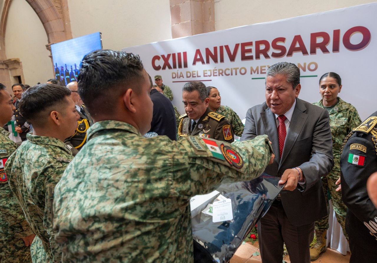 “Muchas gracias. Ustedes soldados, son un ejemplo porque juntos hemos llevado operativos en territorio, y el Ejército ha sido clave para la pacificación del estado; por eso exalto la grandeza de nuestro Ejército”, expresó el mandatario, al resaltar también la colaboración del Obispo de Zacatecas, Sigifredo Noriega Barceló.