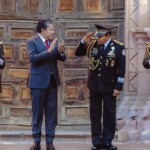 Luego de los Honores a la Bandera, realizados en el Museo Rafael Coronel, el mandatario estatal felicitó a las y los soldados por su labor para lograr la tranquilidad de las familias zacatecanas y, en representación de las instituciones públicas en la entidad, exaltó la grandeza del Ejército Mexicano por su compromiso permanente con la Nación.