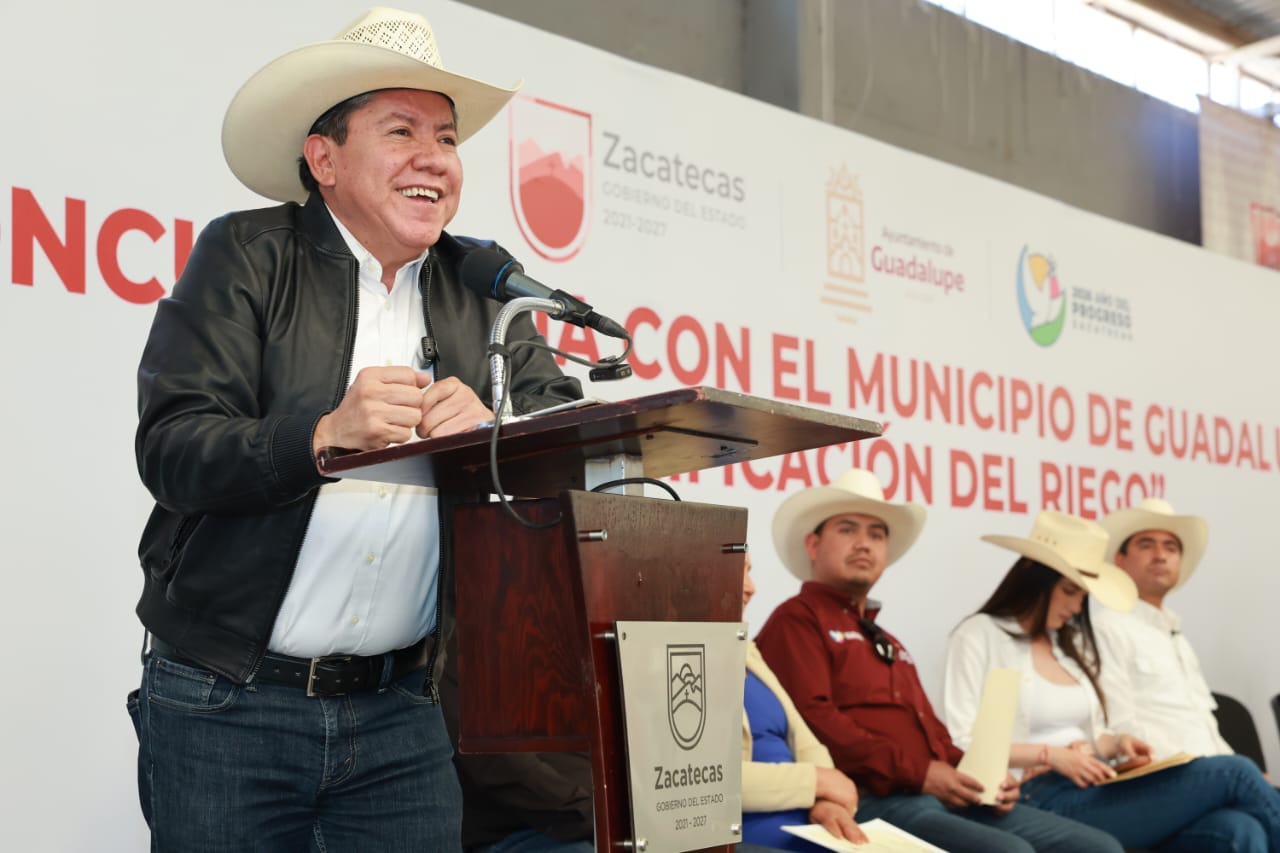 En el caso específico de Guadalupe, indicó que actualmente se apoya al 95 por ciento de los campesinos con tecnificación de riego y adelantó que se continuará ampliando la cobertura y la inversión durante 2026, Año del Progreso.