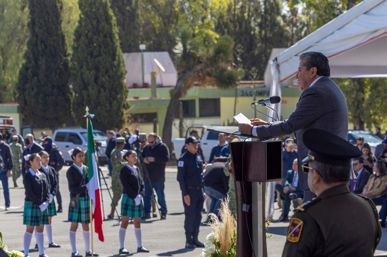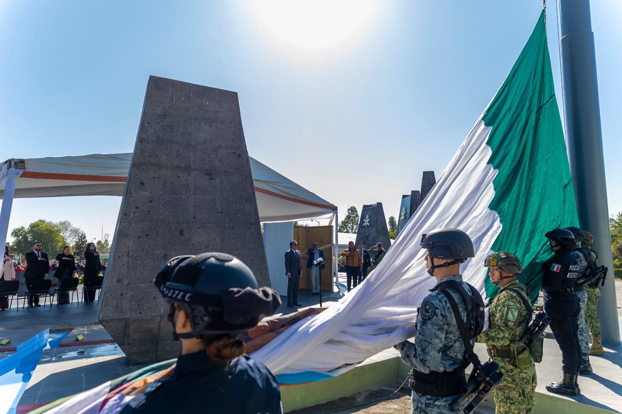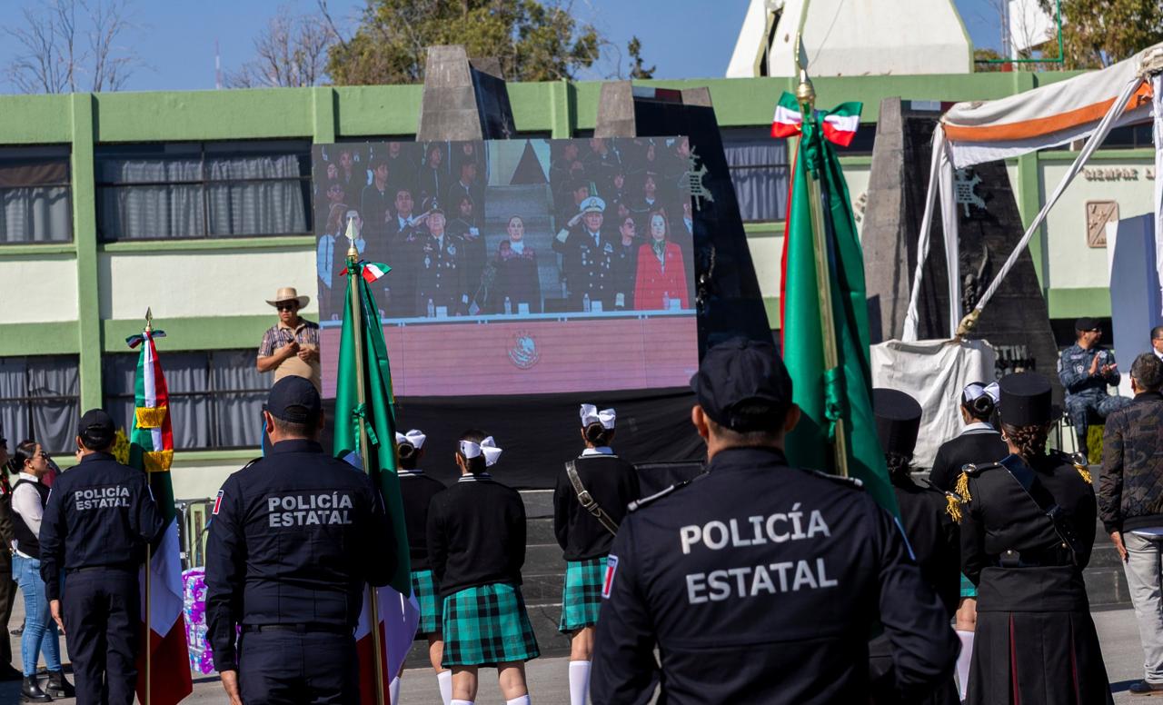 Expresó un reconocimiento a las fuerzas de seguridad, al Ejército Mexicano, a la Guardia Nacional, a la Policía Estatal, a todas las policías auxiliares, y subrayó que su labor cotidiana trasciende el ámbito ceremonial, su labor está en cada jornada en la que arriesgan su vida por la paz, por la seguridad y por la soberanía de México.