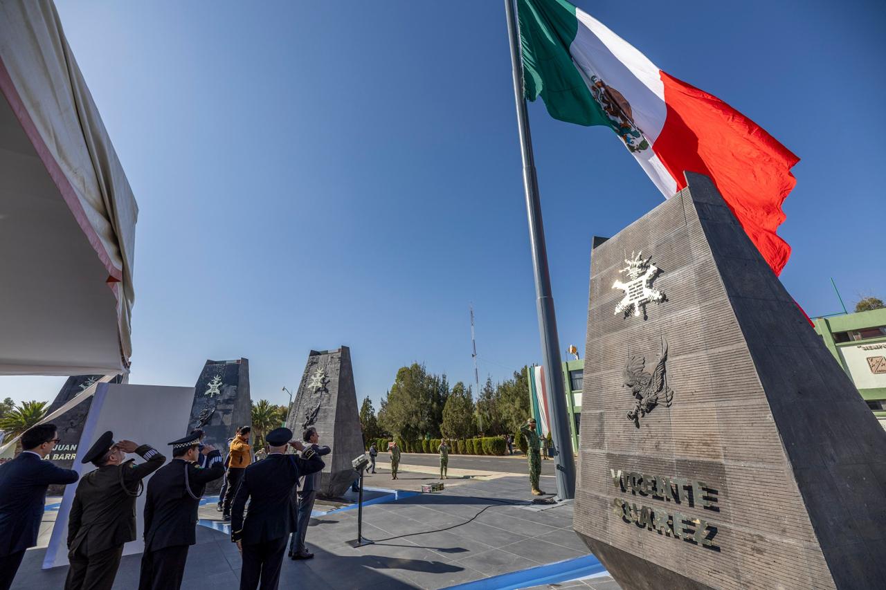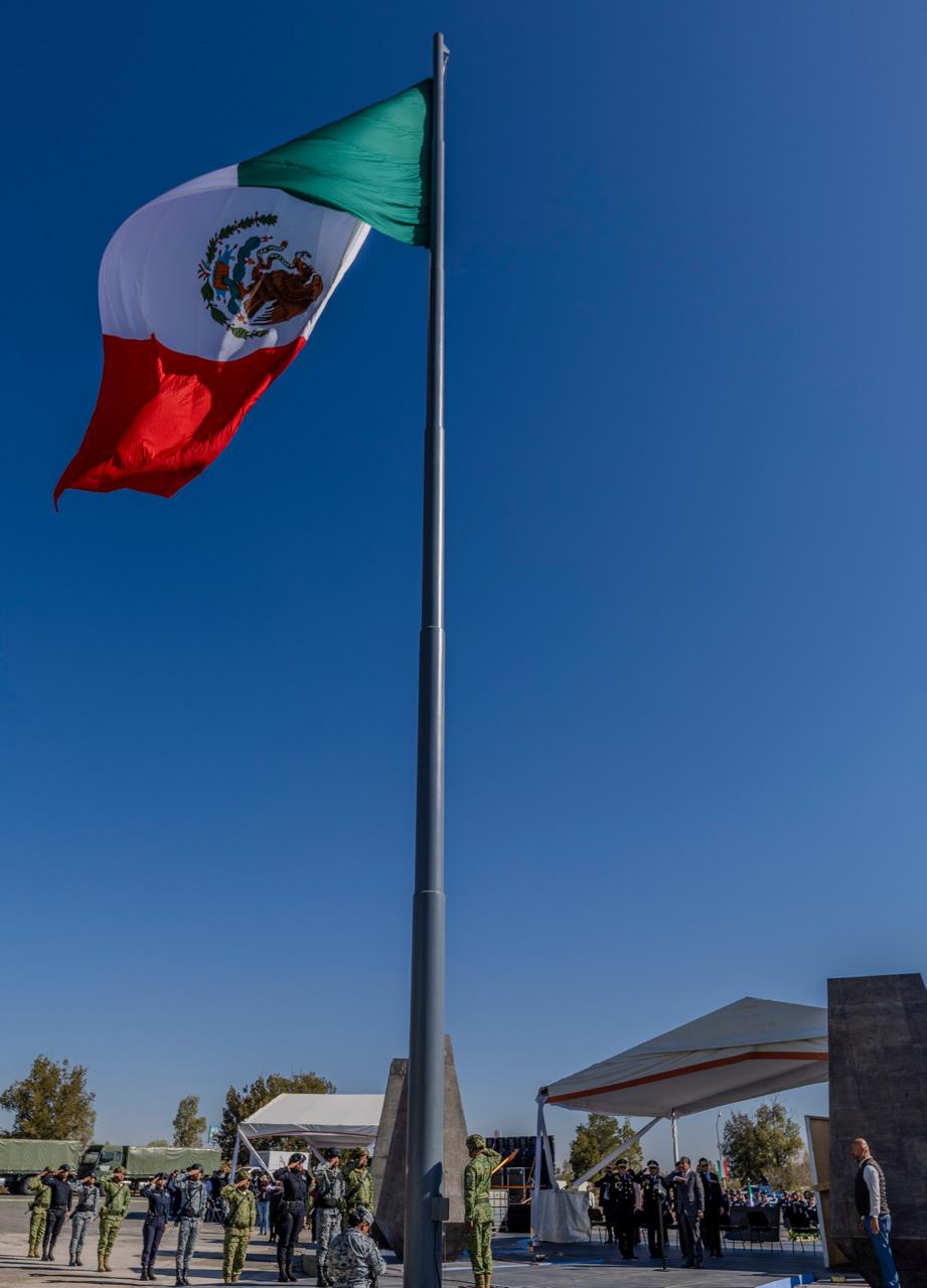 Acompañado por el Comandante de la Decimoprimera Zona Militar, Isaac Bravo López, el mandatario estatal expresó que “no es una fecha cualquiera”, se rinden honores a uno de los símbolos más profundos de la identidad nacional, “nuestra Bandera de México”.