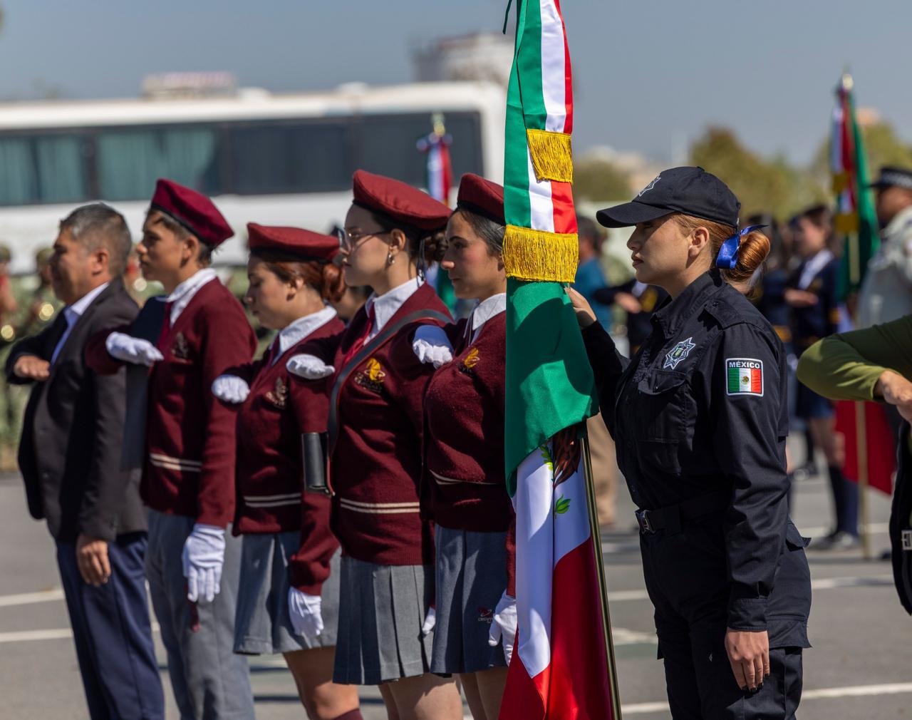 Vía remota, la Presidenta de México, Claudia Sheinbaum Pardo, tomó la protesta de bandera a 80 planteles de la Ciudad de México, así como a 56 escoltas de las Fuerzas Armadas mexicanas y, simultáneamente, a 920 escoltas de escuelas secundarias y de nivel medio superior de las 31 entidades federativas.