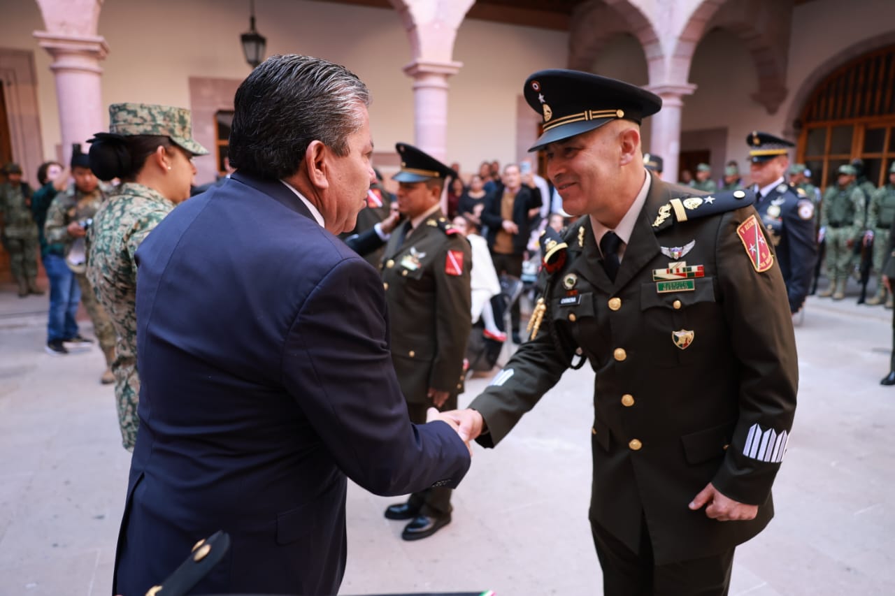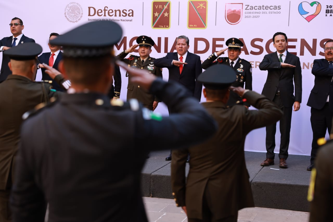 Encabeza Gobernador David Monreal ceremonia de ascensos y condecoraciones a personal del Ejército y Guardia Nacional