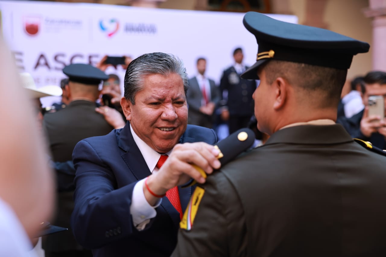 El mandatario estatal expresó su orgullo y reconocimiento a los elementos promovidos, a quienes subrayó la importancia de su labor para el bienestar de las familias zacatecanas.