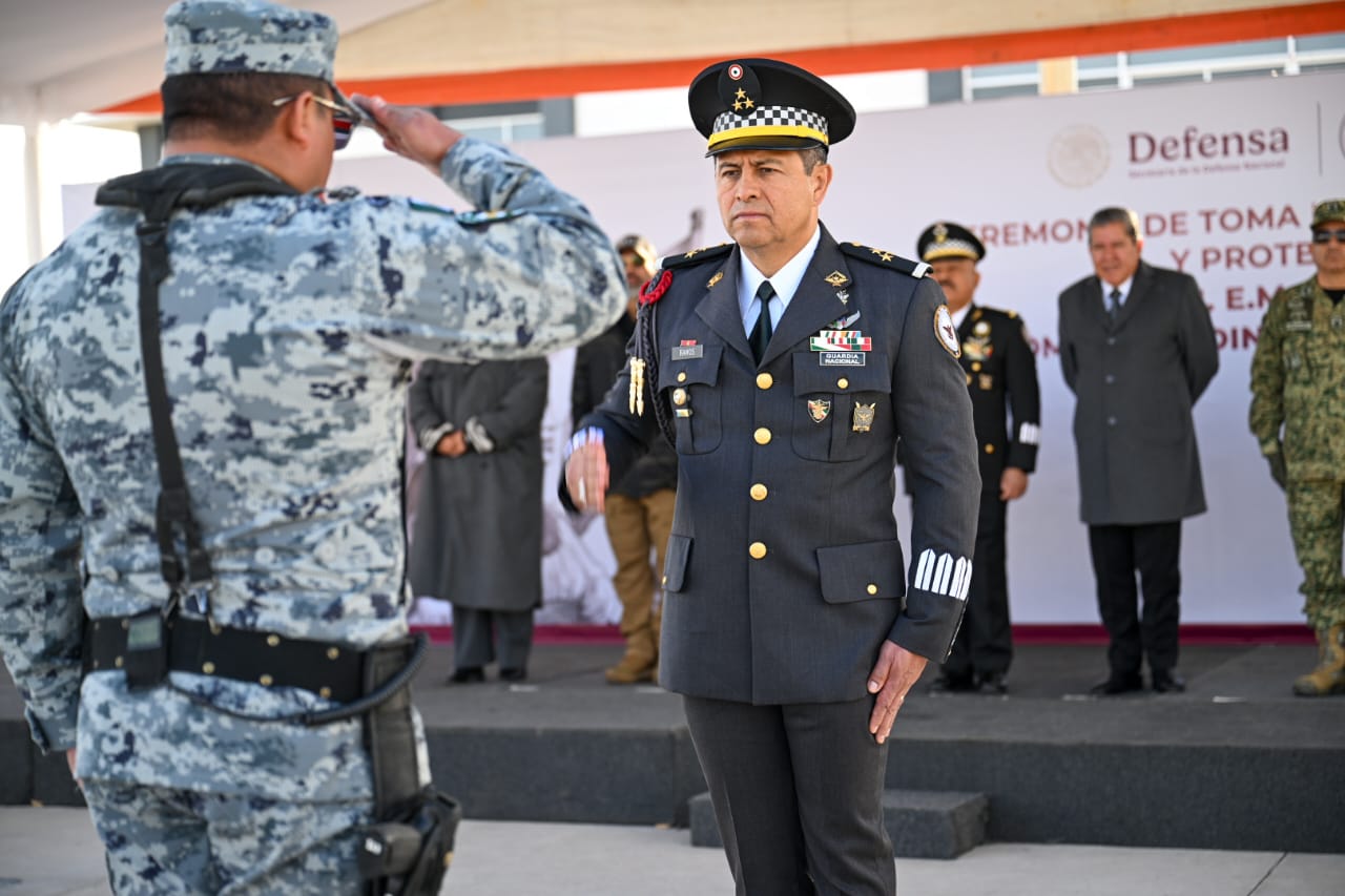 El Coordinador Estatal de la Guardia Nacional en Zacatecas, Vicente Dimayuga Canales, fue el encargado de tomar protesta al Coronel Ramos Lozano, conforme al artículo 177 del Reglamento del Ceremonial Militar.