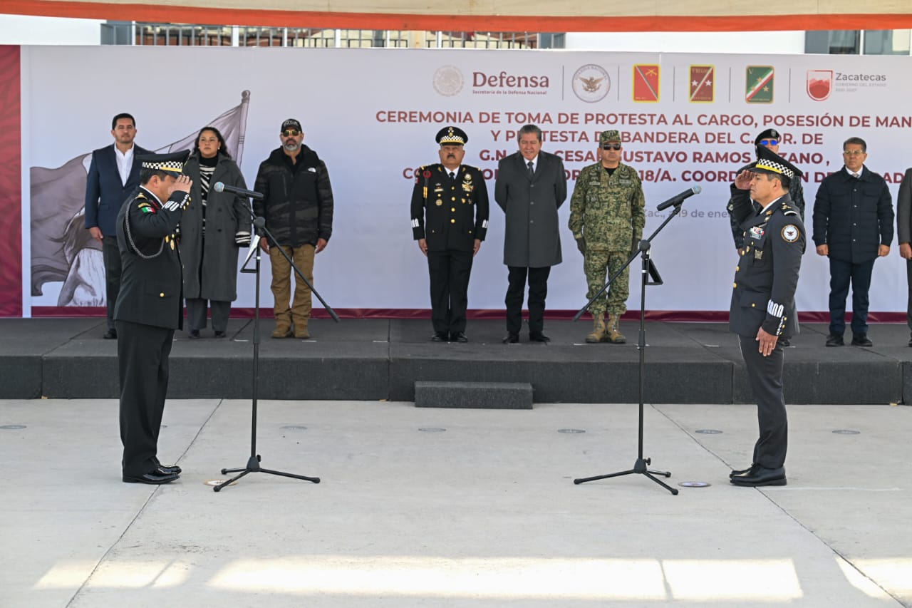 Con la presencia del Coordinador Territorial de la Región Centro Norte del Ejército, Gerardo Serna Melchor, rindió protesta César Gustavo Ramos Lozano como nuevo Coordinador de la Decimoctava Coordinación de Unidad de la Guardia Nacional en Zacatecas.