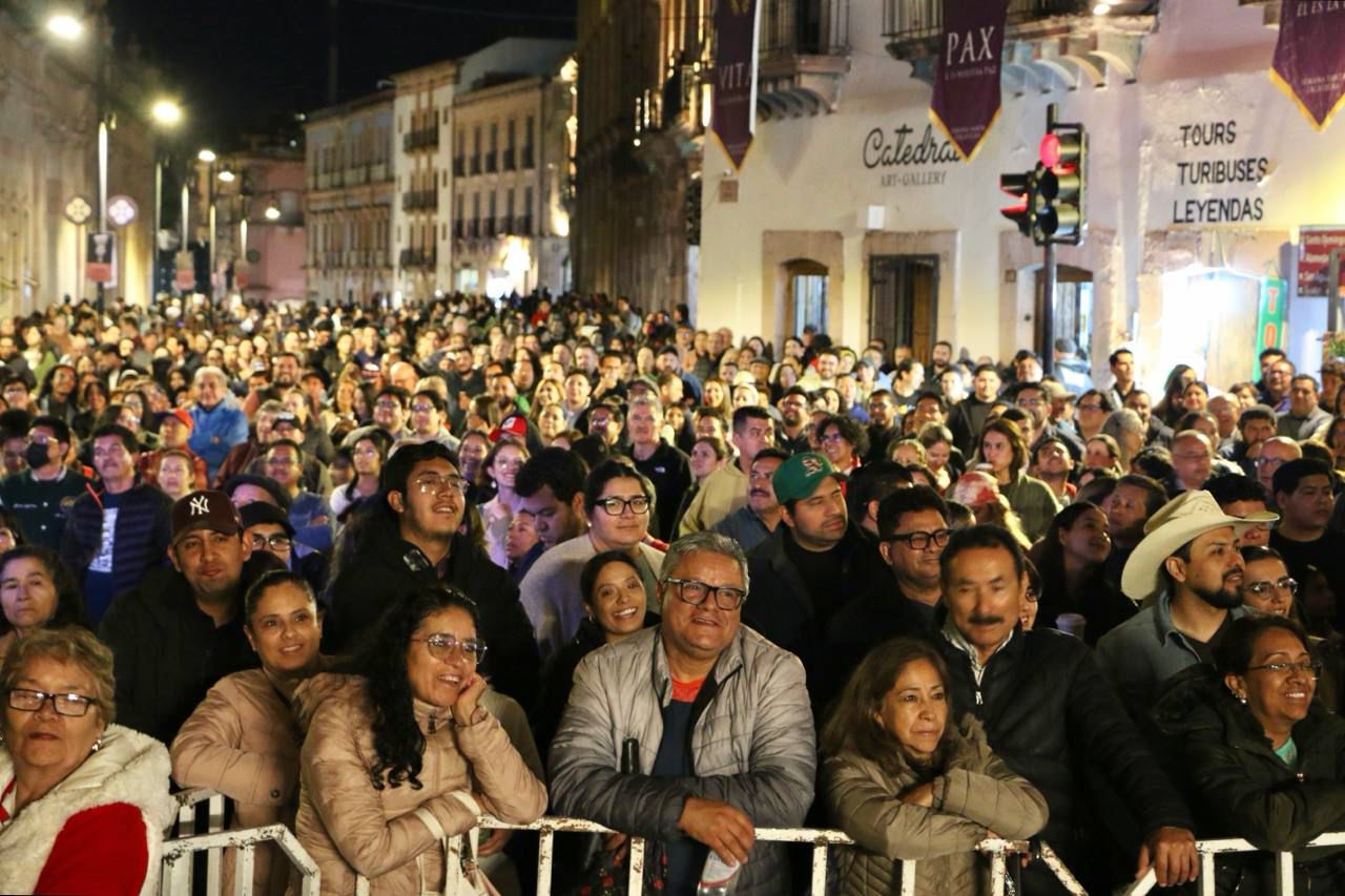 Uno de los momentos más significativos de la noche llegó con la interpretación de la Marcha Zacatecas, de Genaro Codina, pieza que despertó un profundo sentido de identidad y emoción colectiva entre los asistentes.