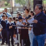 Anunció que “este año entregaremos calzado de piel, de buena calidad, y el próximo año se otorgará también el valor económico del calzado, como se hace con los uniformes, para que las familias decidan el tipo y talla adecuados; con ello, fortalecemos la economía local y la autonomía de los comités escolares”.