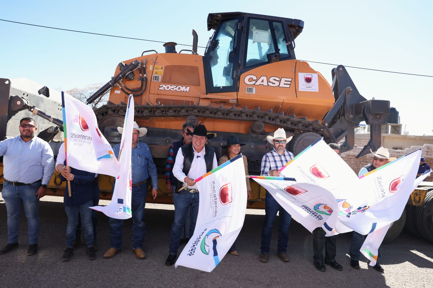 En este evento, el Gobernador David Monreal realizó la entrega de siete nuevas máquinas que estarán al servicio de las y los productores, a través de la Secretaría del Campo (Secampo), para trabajos como desazolve de bordos, rehabilitación de caminos sacacosechas, limpieza de presas y apoyo en infraestructura rural.