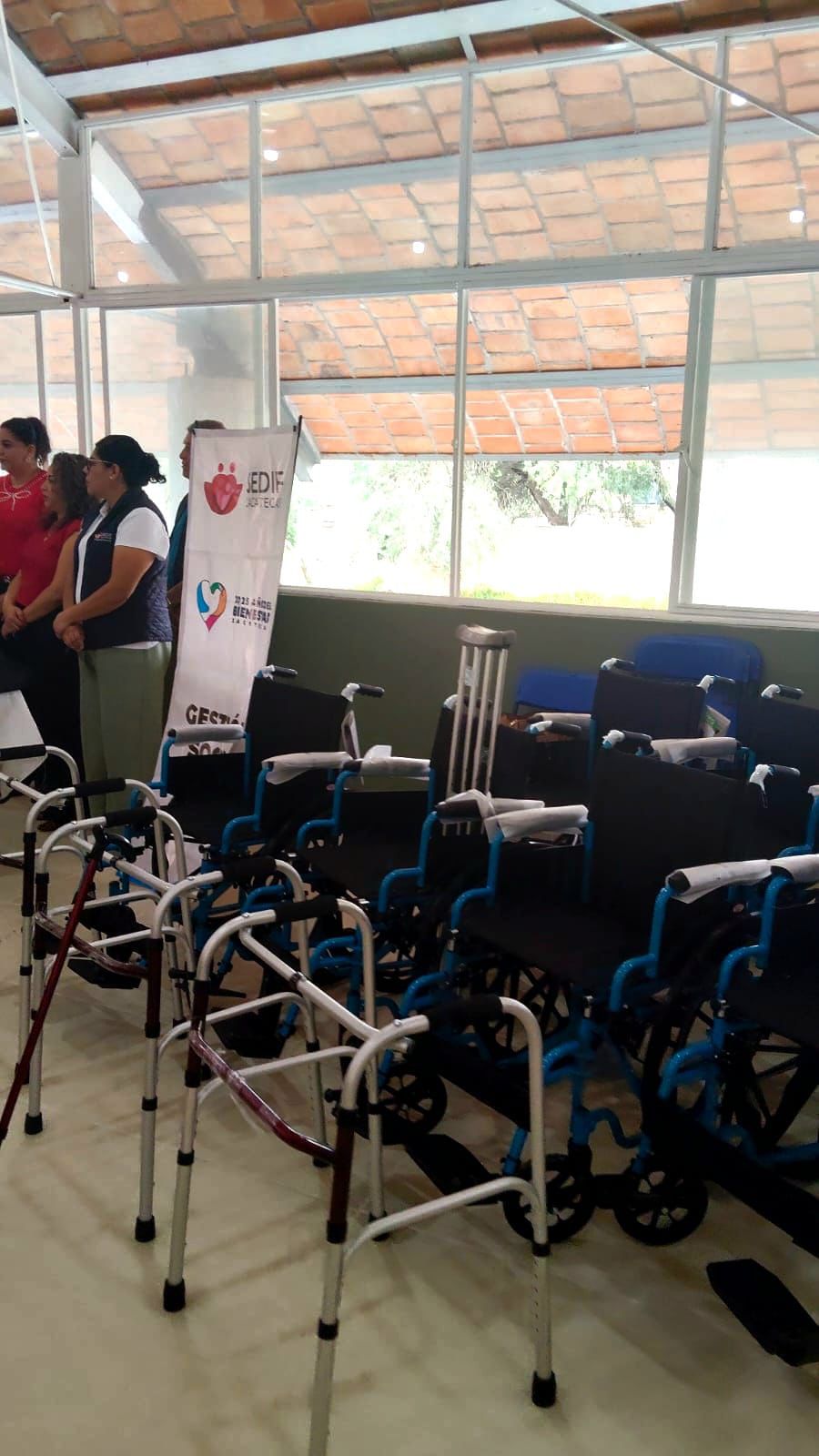 - Se hizo entrega de sillas de ruedas, bastones y andadores a adultos mayores y personas con discapacidad
