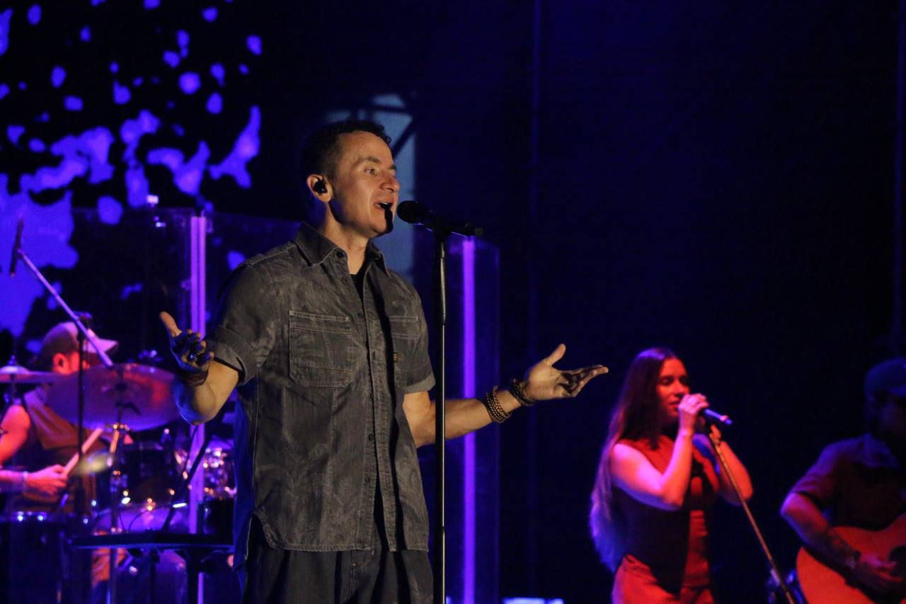 Con una energía arrolladora y una conexión genuina con el público, el artista logró transformar el emblemático espacio del centro histórico en una auténtica fiesta musical, al interpretar temas como Eres mi sueño, Simples corazones, Vine a buscarte, Pedacito de playa, Entre mi vida y la tuya, y otros.