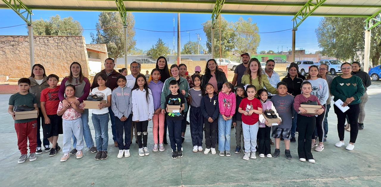 En las últimas semanas, a través de la Secretaría de Desarrollo Social (Sedesol), la administración estatal llevó apoyo directo a primarias rurales del noroeste de Zacatecas, con la entrega de calzado escolar en comunidades de Sombrerete, Chalchihuites y, en esta ocasión, Jiménez del Teúl.